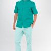 | Stoffe | Kleidung in Farben: Weiss, Blau, Blassgrün, Gelb, Grau, Kiwi, Beige, Braun, Schwarz, Lavendel, Pflaume, Dunkelblau, Azurblau, Türkis, Magenta und Koralle wird aus italienischer Polyester – Baumwollmischung (50% Baumwolle, 50% Polyester) hergestellt. Dunkelgrün: Material 33% Baumwolle, 67% Polyester |