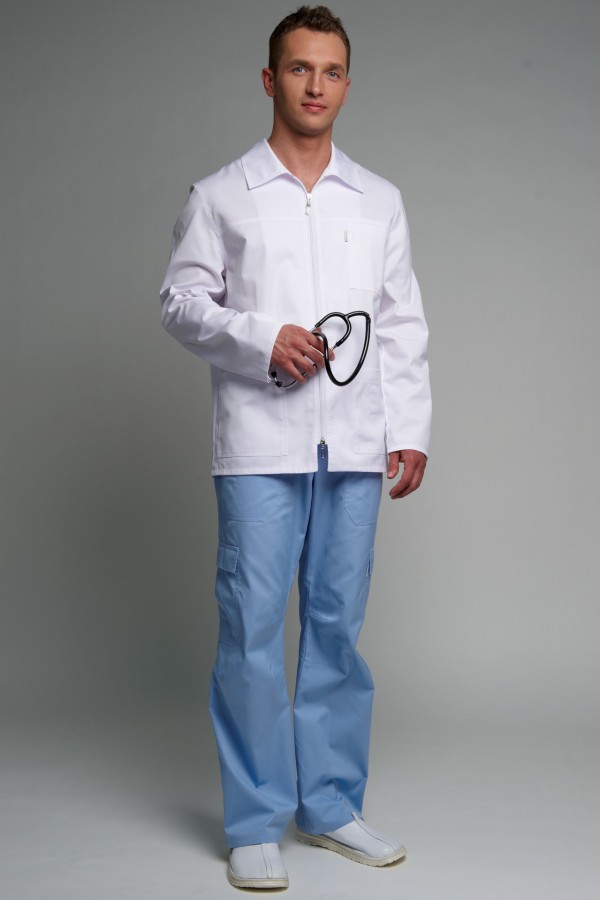 Kasack mit 2- Wege Reissverschluss, Kragen, 1 Brusttasche und 2 Seitentaschen.