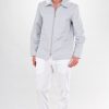 | Stoffe | Kleidung in Farben: Weiss, Blau, Blassgrün, Gelb, Grau, Kiwi, Beige, Braun, Schwarz, Lavendel, Pflaume, Dunkelblau, Azurblau, Türkis, Magenta und Koralle wird aus italienischer Polyester – Baumwollmischung (50% Baumwolle, 50% Polyester) hergestellt. Dunkelgrün: Material 33% Baumwolle, 67% Polyester |