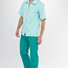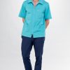 | Stoffe | Kleidung in Farben: Weiss, Blau, Blassgrün, Gelb, Grau, Kiwi, Beige, Braun, Schwarz, Lavendel, Pflaume, Dunkelblau, Azurblau, Türkis, Magenta und Koralle wird aus italienischer Polyester – Baumwollmischung (50% Baumwolle, 50% Polyester) hergestellt. Dunkelgrün: Material 33% Baumwolle, 67% Polyester |