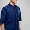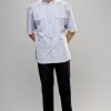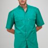 Kasack mit Druckknöpfen, abstehenden Kragen, 2 Brusttaschen und 2 Seitentaschen.